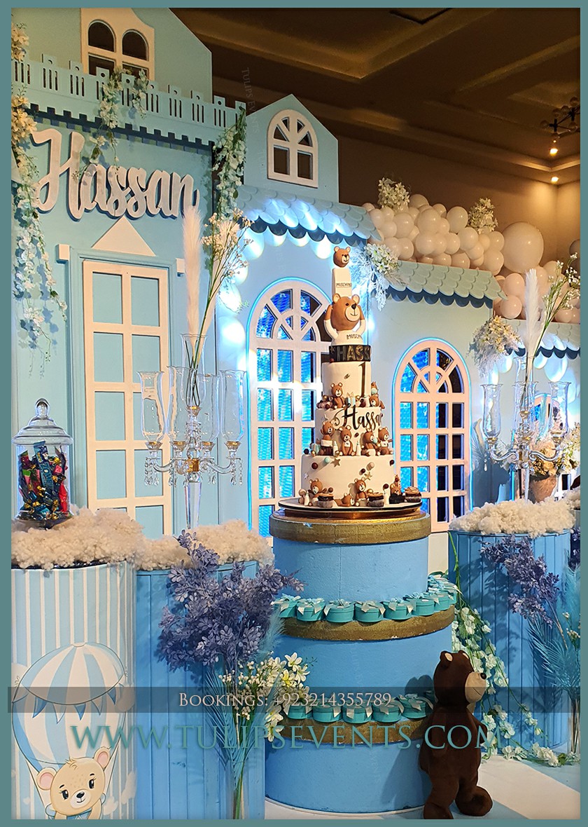 Brown, beige, and blush tones create a cozy vibe. Perfect for garden birthdays or indoor spaces in Lahore, this theme includes plush teddy bear props, picnic setups, and “bear-y” cute cake tables.