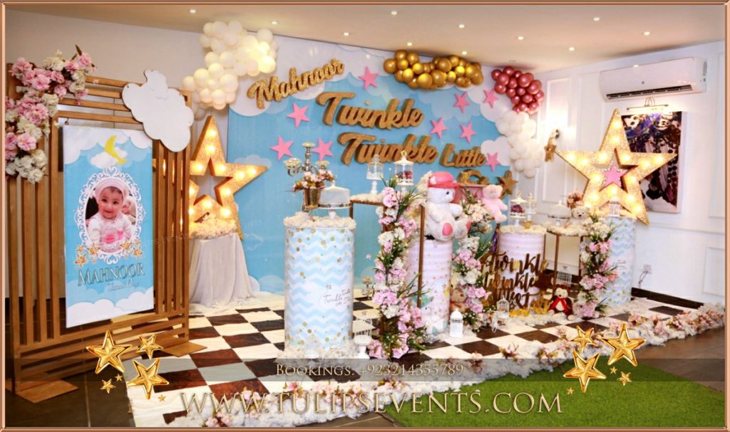 A dreamy, celestial theme that features stars, moons, and clouds. Ideal for Lahore parents who want a cozy, night-sky feel at indoor venues or rooftops.