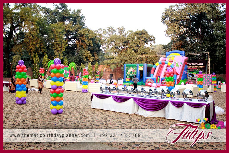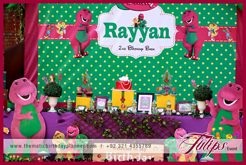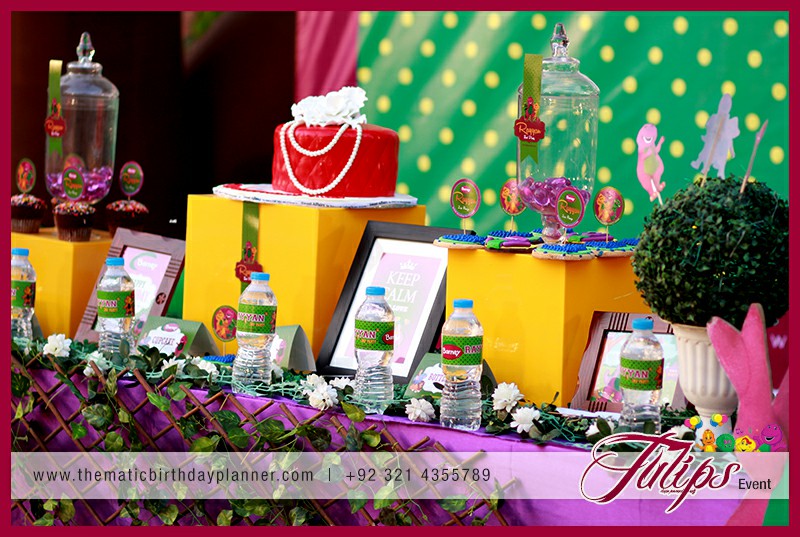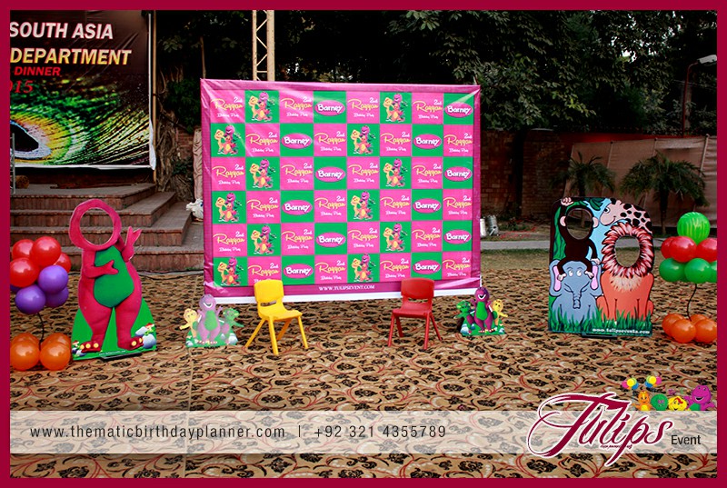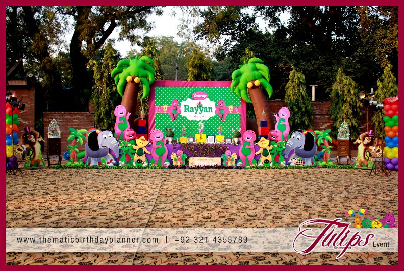 If you are planning a Barney theme party for baby’s next birthday in Pakistan. Tulips Thematic Birthday Party Planner Experts renting and planning you a smashing Barney Birthday Party Theme decoration in Lahore, Sialkot, Faislabad, Barney entertainer, balloons decorations, barney backdrop, barney party supplies (food, decorations, activities, goodie bags). Giving you detailed consultancy in all possible birthday party services & solutions at affordable prices.