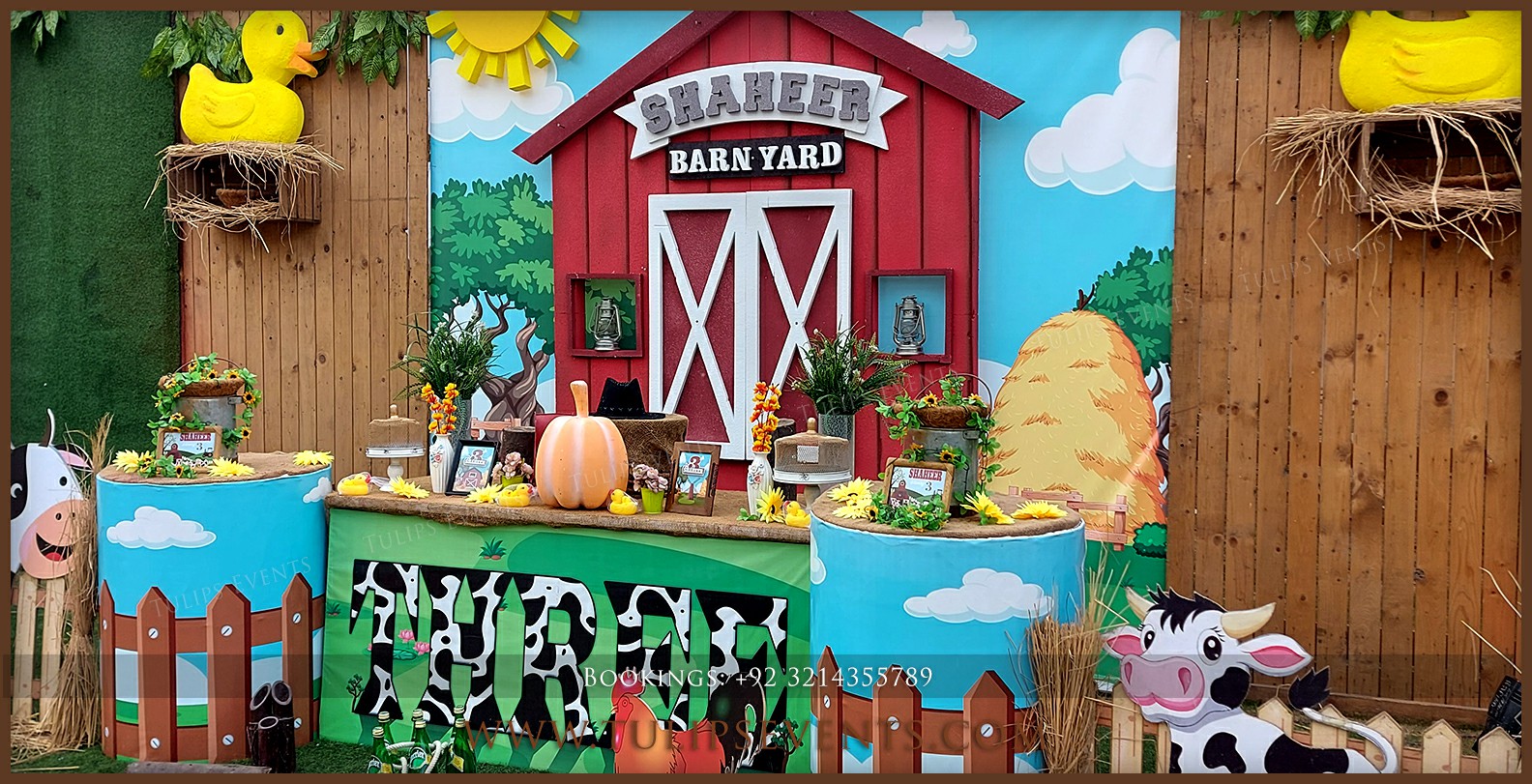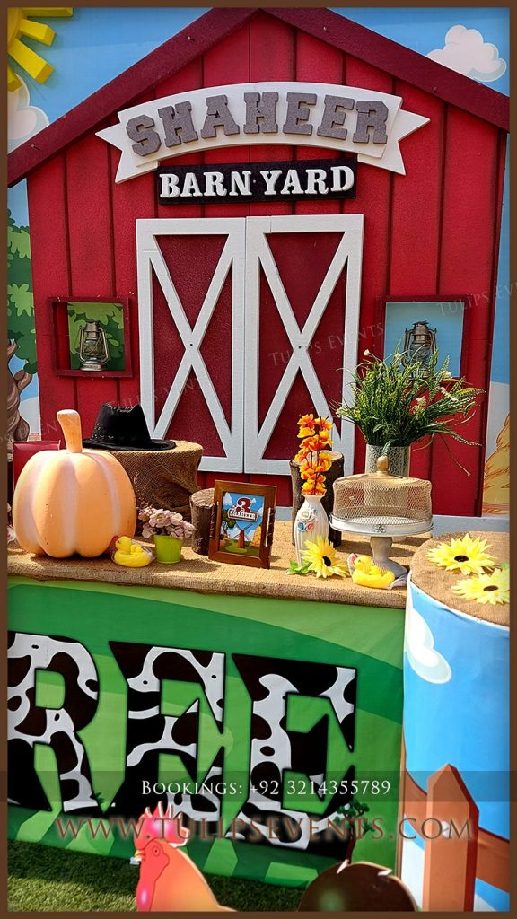 Explore our farm fresh Barnyard Theme Birthday Party decorations ideas in Pakistan. Barnyard animals experience living in the party.