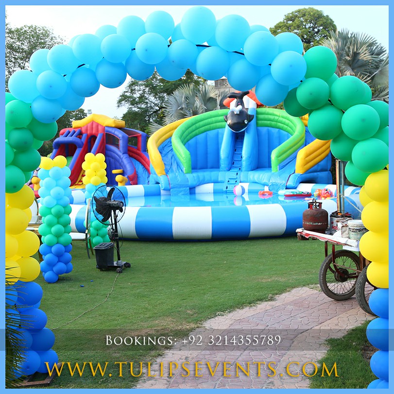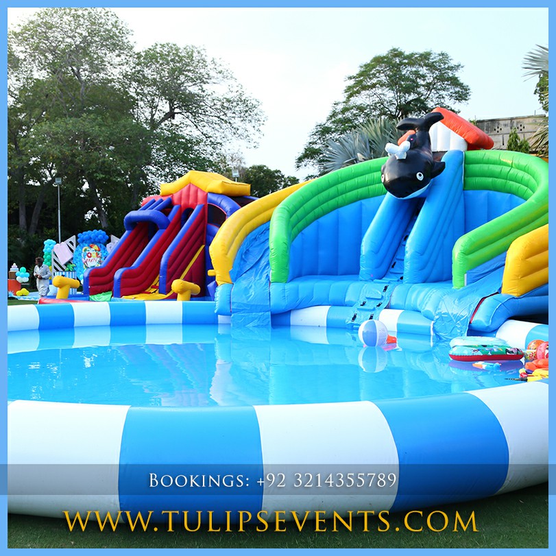 Plan the ultimate pool party with the Best Pool Party Planner in Lahore! From summer theme decor to pool slide rentals, games & jumping castles for kids!