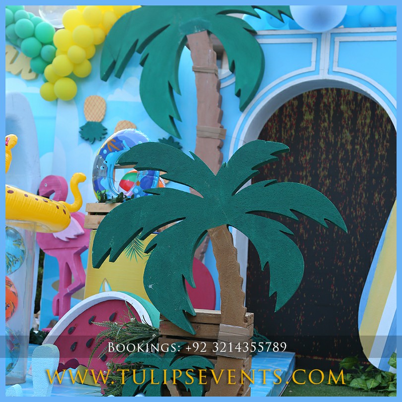 We specialize in creating summer theme birthday decor, offering pool slide rentals in Lahore, organizing live games, and setting up jumping castles and kids fun land zones that keep the little ones engaged and entertained for hours.