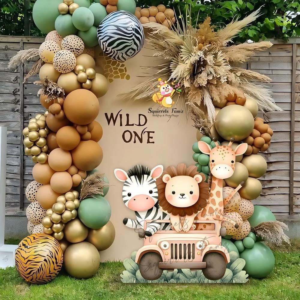 Green & Brown Balloon Garland: Mimic jungle foliage using earthy-toned balloons with pops of animal prints.