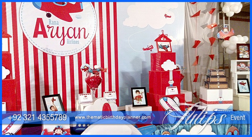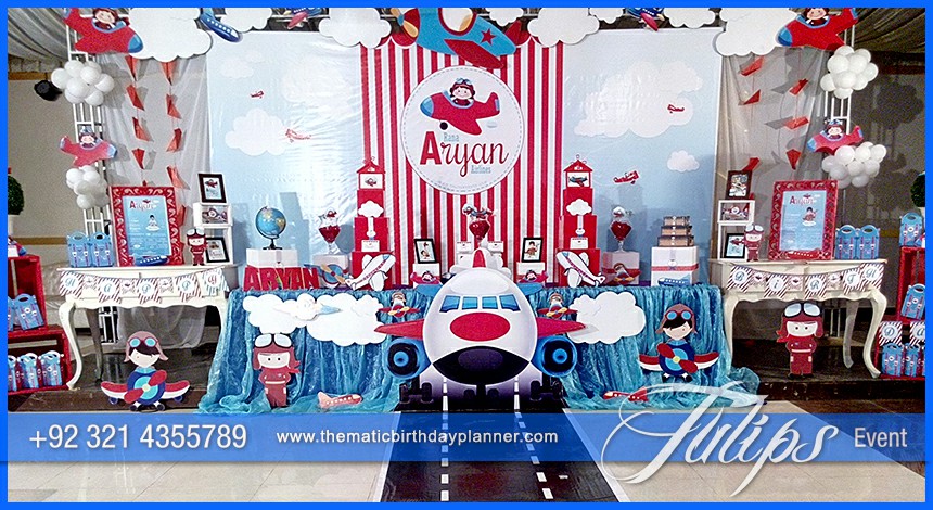 Each child dreams to fly like a birds. This time Tulips Events gives you an opportunity to fill you child’s birthday with the amazing themed party decoration adventure at your home, backyard, hotel or restaurant in Pakistan. You don’t face any hassle to arrange such fantastic birthday party and keep you child’s special day very memorable. we can give you complete Airplane Birthday Theme party supplies with, cups, plates, caps, napkins, food labels, goody bags, Airplane themed backdrop, balloons decorations, streamers and banners etc.