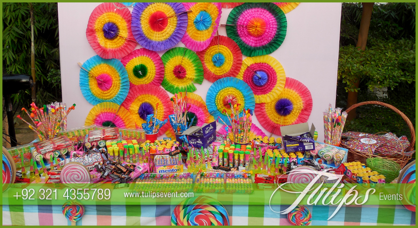 we can create a vibrant and tremendous atmosphere for your Sweet Candy Shoppe party with decorations inspired by candy colors, patterns and labels in all over Pakistan.