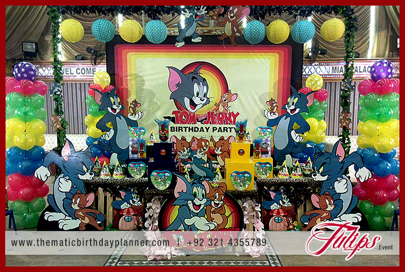 Surprisingly Tulips Thematic birthday planner help you to plan sticky hassle free situation for Tom & Jerry birthday party theme decoration in you home, hall, backyard, ground in Pakistan. We’ll provide you all complete variety of themed plates, napkins, cups and all of the other must have essentials for your next baby’s party in Lahore, Islamabad, Sialkot Pakistan. But if you want to make your party a level up, then you’ll be happy to find our personalized items such as cake toppers, water bottle labels, paper sticks, backdrop. table centerpieces and a large selection of Tom and Jerry balloons. We ensure you that for save your time, money and stress when planning your child’s birthday celebration. Some memorable moments with Tom & jerry fun will be with your always.