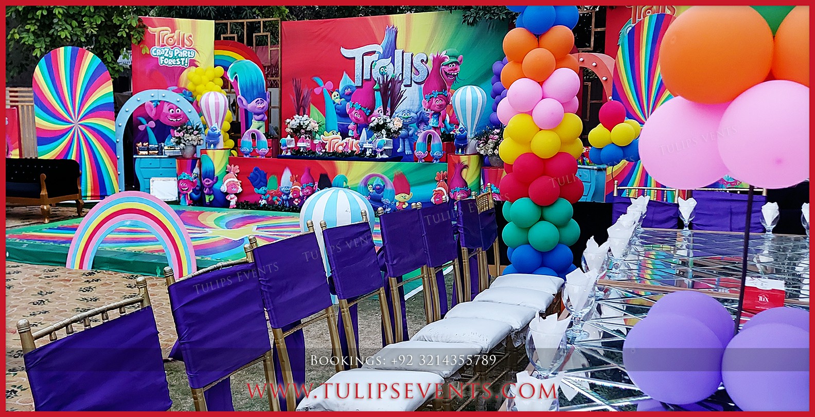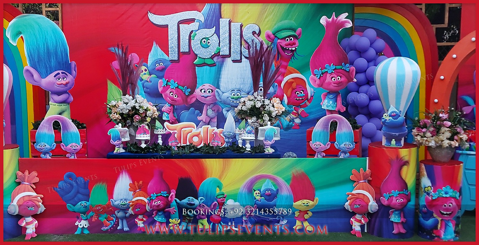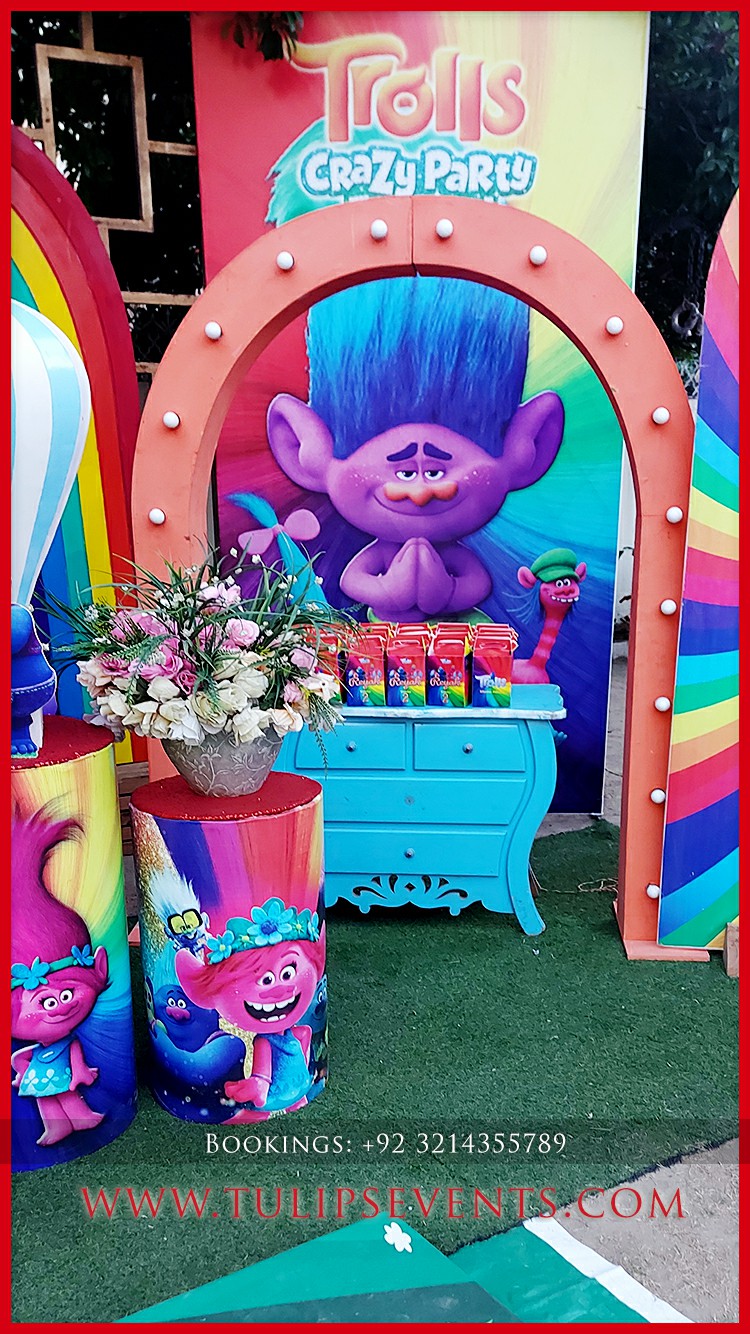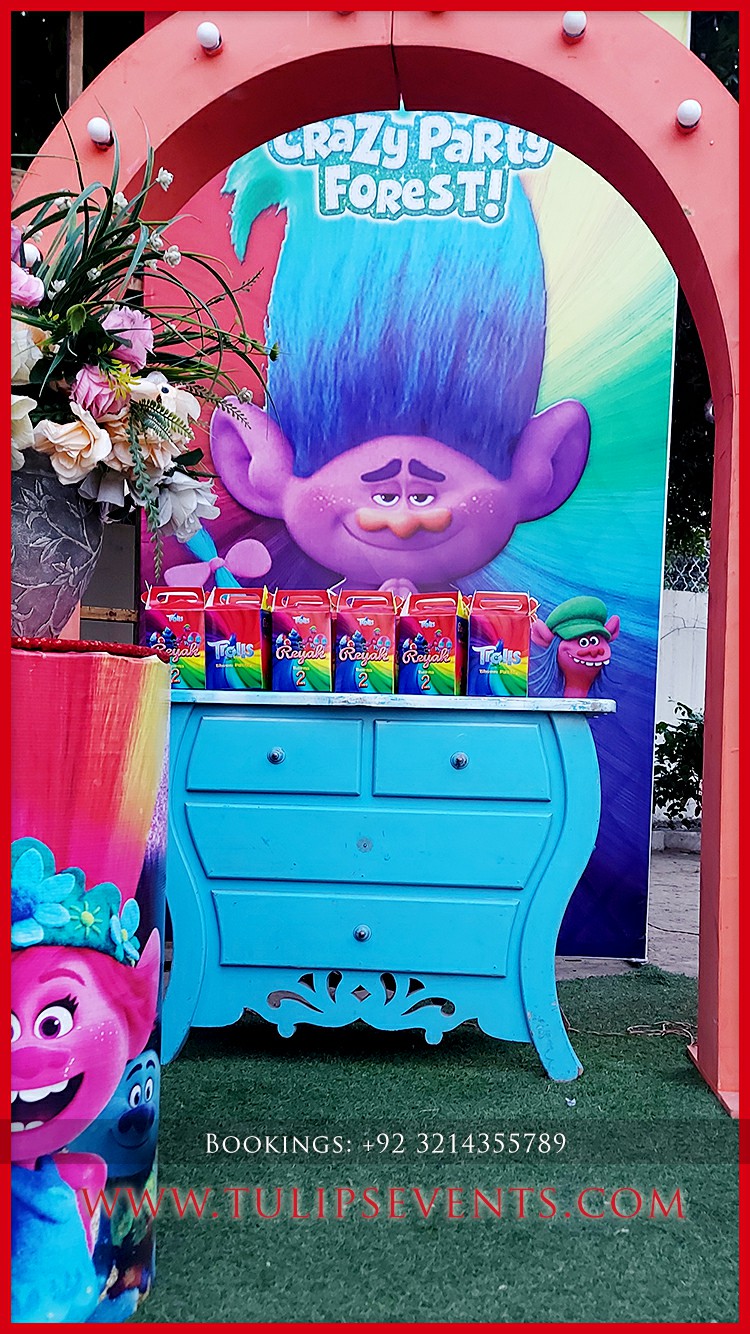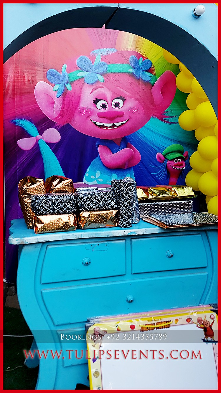 We giving you another amazing party that is Trolls theme birthday party decoration setup. 3D trolls party backdrop along with lots of trolls party props ideas in Pakistan.