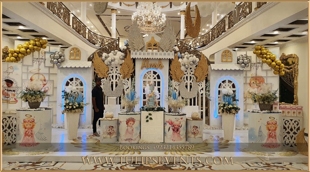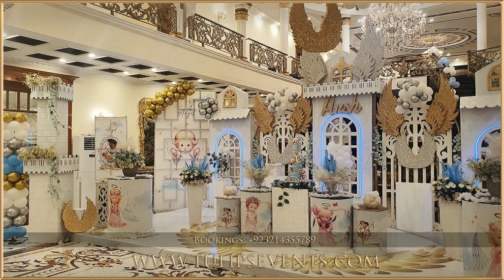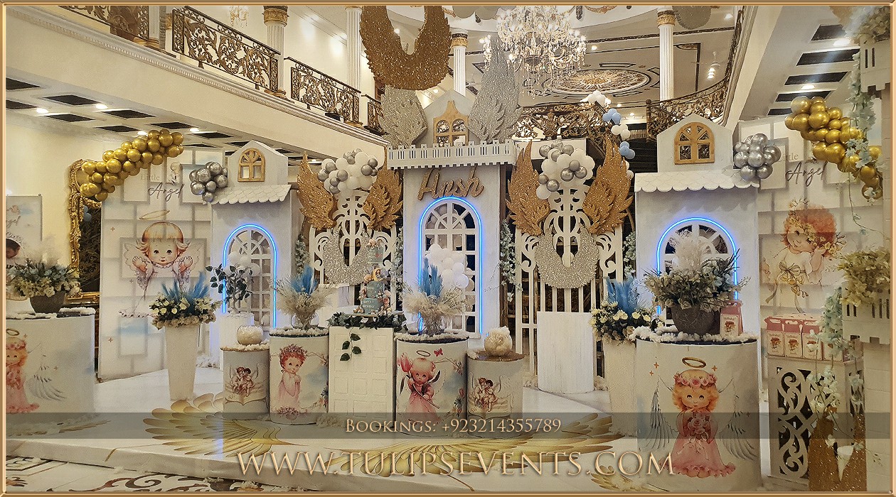 At Tulips Events, we bring your vision to life with customized Little Angel Birthday Theme decor, ensuring a stress-free and memorable celebration in Lahore, Pakistan.