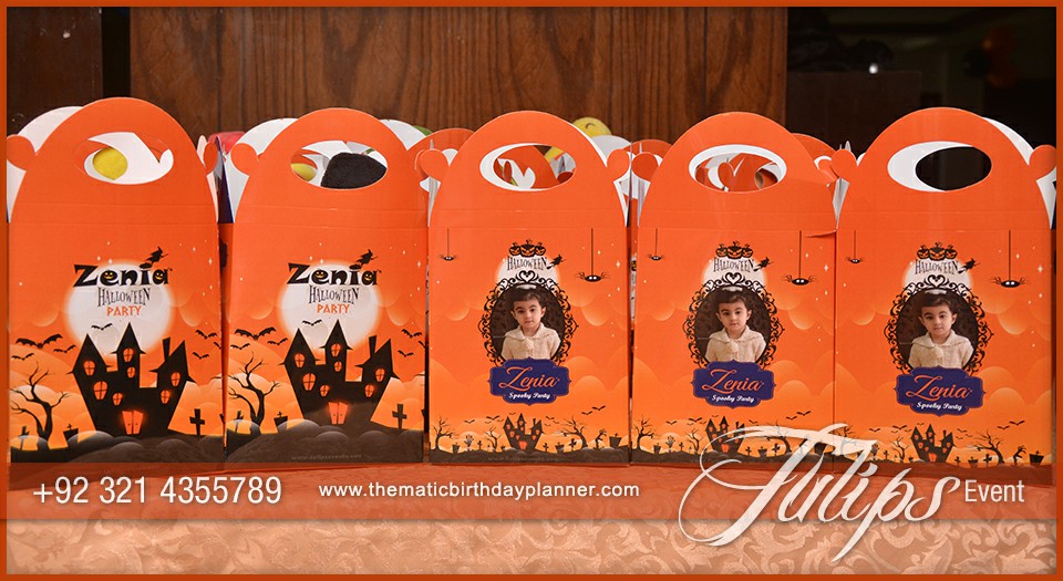 Tulips creative team make own styles for all printable and handmade party elements. From customized Halloween cupcake toppers that contains birthday or party boy / girl name. Water bottle labels that make your cake table more filled with themed objects. Never the less themed Halloween goody bags filled with Halloween surprise gifts and toys.