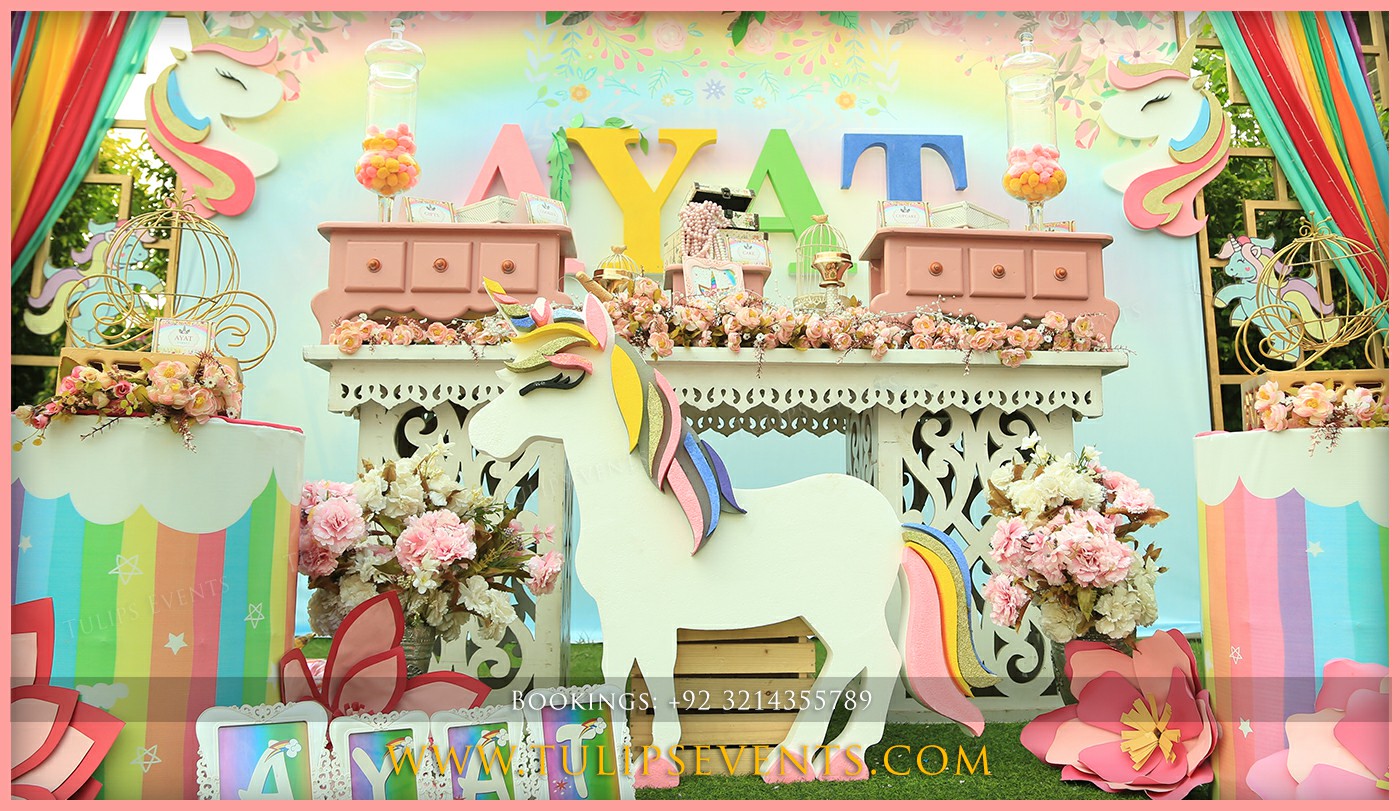 One of the most Instagram-worthy themes right now! Soft pastel balloons, dreamy rainbows, and glittery unicorn props make this setup enchanting.