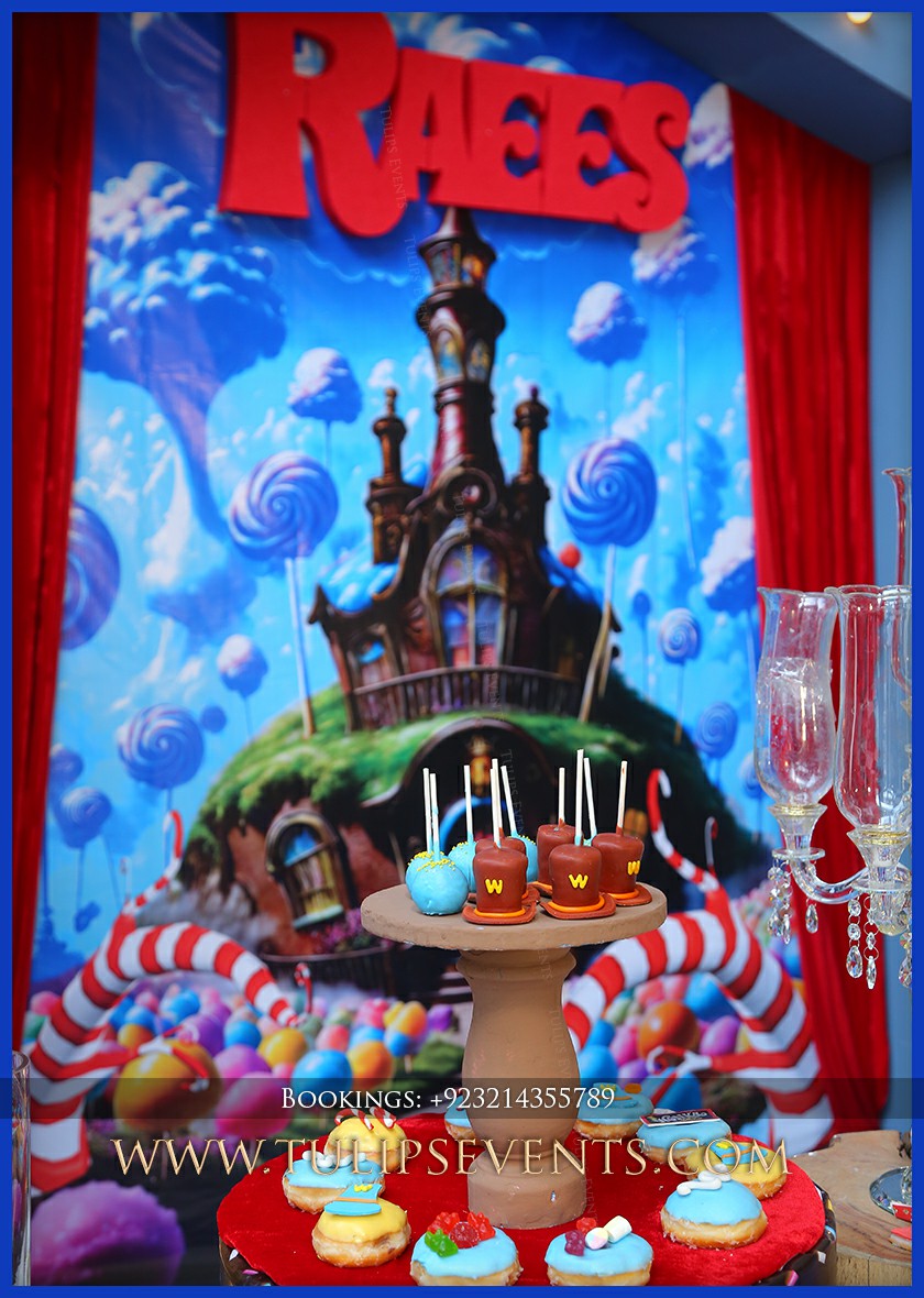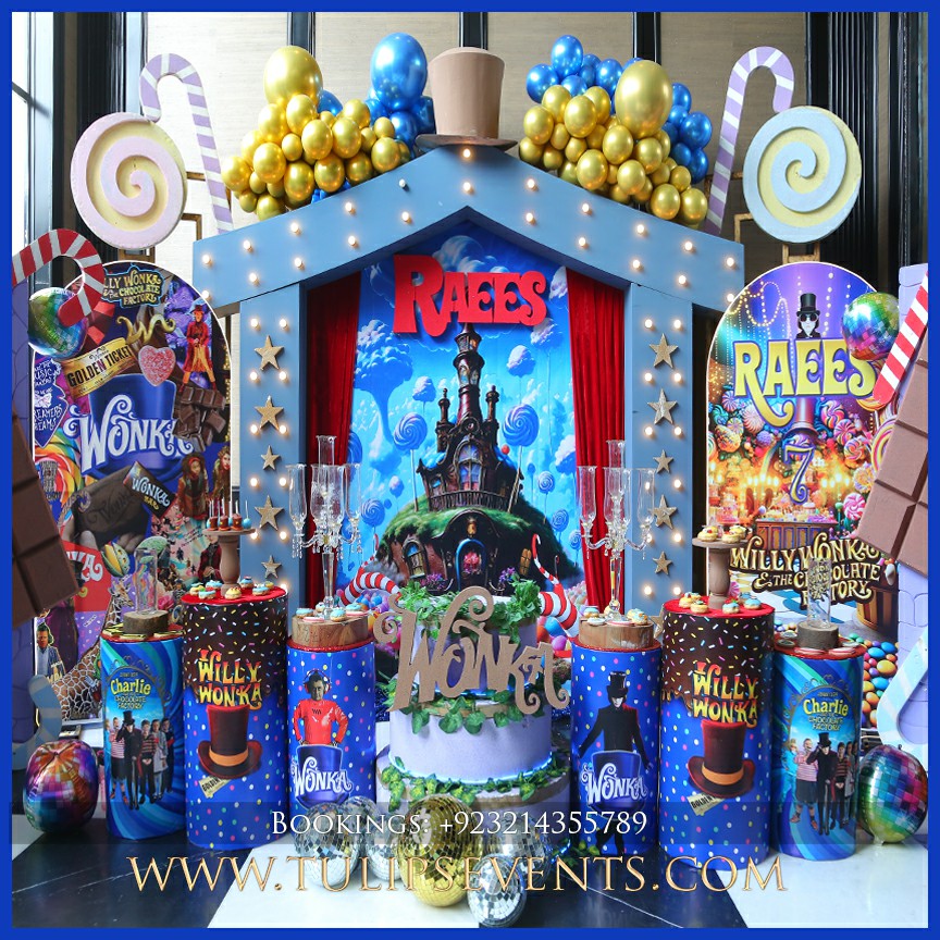 The Willy Wonka theme offers endless opportunities to turn your party into a candy-coated dream. From chocolate rivers and candy walls to golden ticket invitations and Oompa Loompa-inspired props, every element can be customized to match the child’s age and personality. This theme works exceptionally well for both indoor and outdoor setups, especially in Lahore’s farmhouse venues or garden spaces.