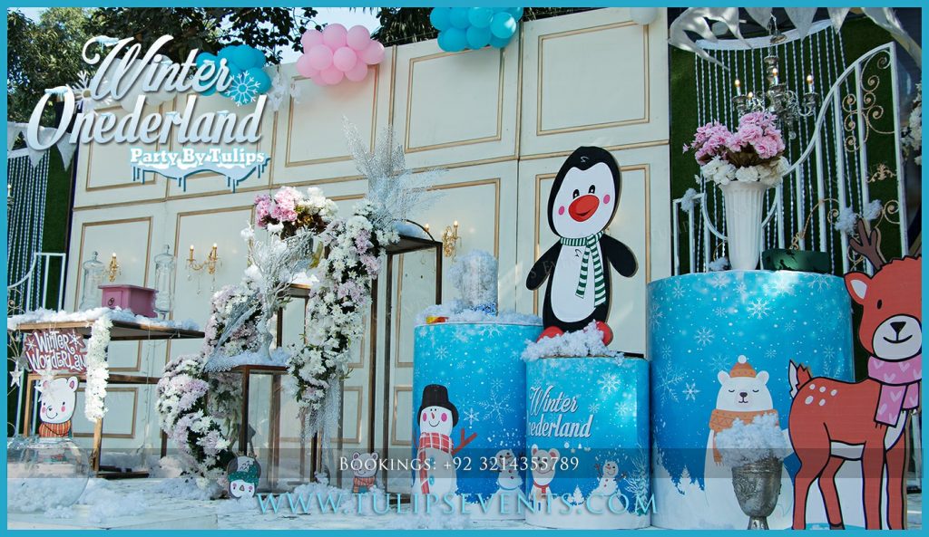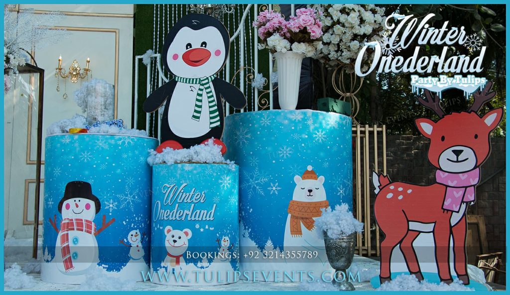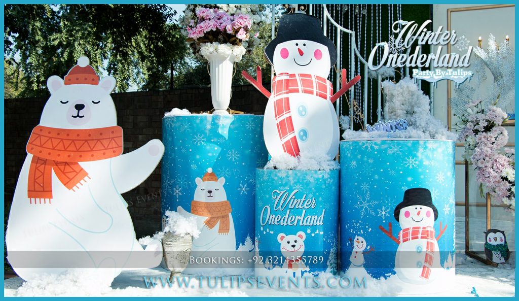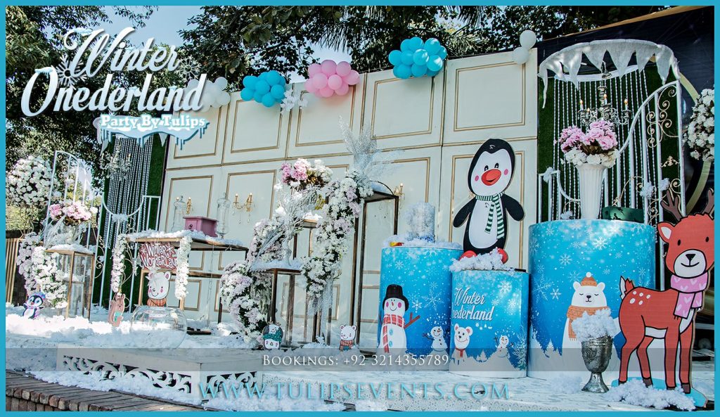 Tulip events creative team giving you Winter Onederland Party theme party decorations ideas along with kids playland services, food, games and live party fun services in Pakistan.